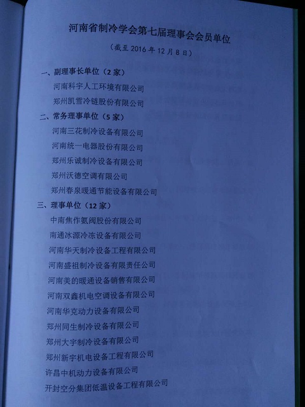 2016年12月10日河南省制冷學(xué)會第七次會員代表大會在鄭州順召開,中南焦作氨閥股份有限公司參加本次大會,并當(dāng)選河南省制冷學(xué)會理事單位。
