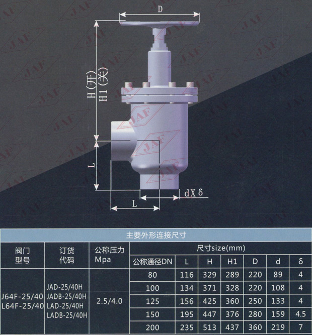 對(duì)焊直角截止閥J64F-25(40) 對(duì)焊直角節(jié)流閥L64F-25(40)